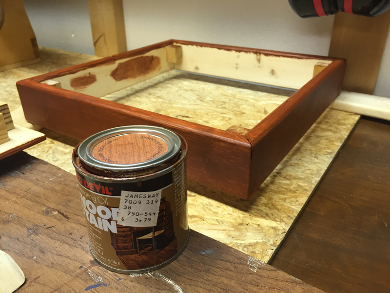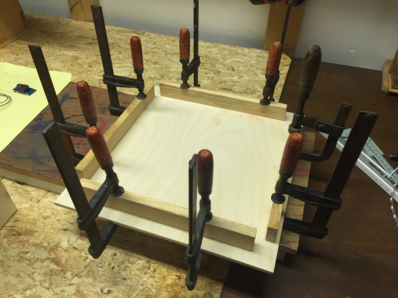 Let's get this out of the way - this was my first woodworking project ever, so I was learning as I went. I kept the design very simple, and overall it didn't turn out too bad. The blocks in the corners are there to keep the backplate (which holds everything) in the right place.